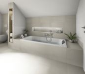 Durch die Auswahl warmer Farbtöne bei den Fliesen bekommt das Badezimmer direkt ein angenehmes, einladendes Ambiente.