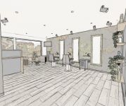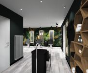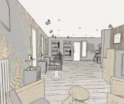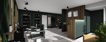 Unsere Planungen sahen eine kleine Sitzecke als Wartebereich sowie beleuchtete Regale neben den Firseurstühlen vor. Letztere sollten die Pflege-Produkte rund ums Haar, die direkt vor Ort gekauften werden können, besser in Szene setzen.